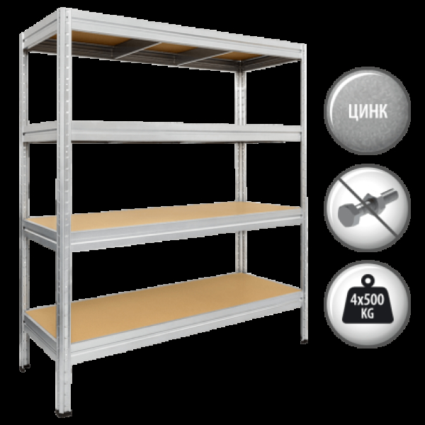 Метален стелаж MEGA 177x200x60 см, до 500 кг на рафт - цинк