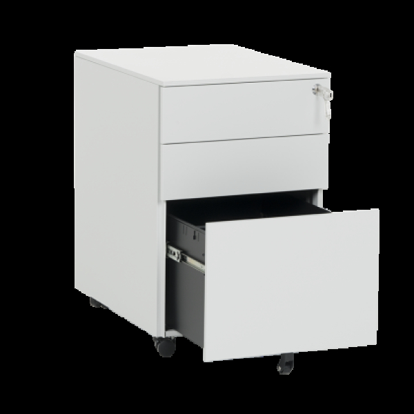 Офис контейнер Carmen CR-1806 K – практичен кардекс с 3 чекмеджета и централно заключване. След отключване всяко чекмедже се отваря самостоятелно, докато другите 2 са в затворено положение. Моделът е изработен от праховобоядисан метал с гладко покритие и пристига цял, без нужда от монтаж. В основата... →