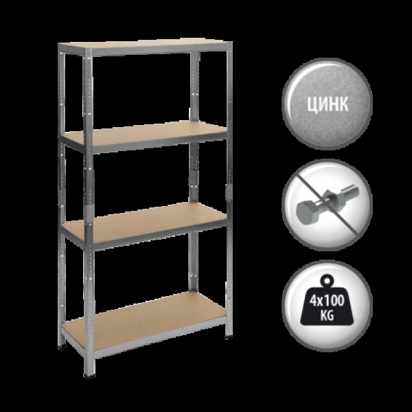 Метален стелаж Carmen CR-1011 - 160х80х40 см, до 100 кг на рафт - цинк