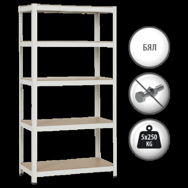 Метален стелаж Carmen CR-1016 - 180х90х45 см, до 250 кг на рафт - бял