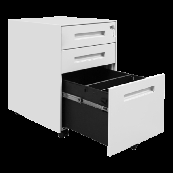 Офис контейнер Carmen CR-1818 ZH разполага с 3 чекмеджета, като долното е подходящо за висящи папки, а горните две са предназначени за канцеларски материали и аксесоари. Моделът е снабден с централно заключване с ключ, което осигурява безопасност и сигурност в работната среда. Вградените дръжки в па... →