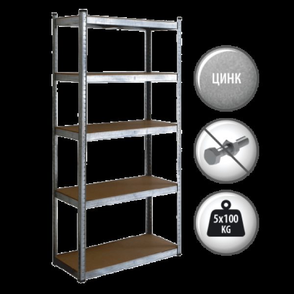 Метален стелаж Carmen CR-1023, 180x90x40 см, до 100 кг на рафт - цинк