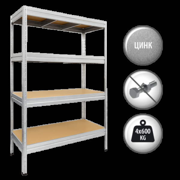 Метален стелаж Carmen CR-1024-1, 180x120x60 см, до 600 кг на рафт - цинк