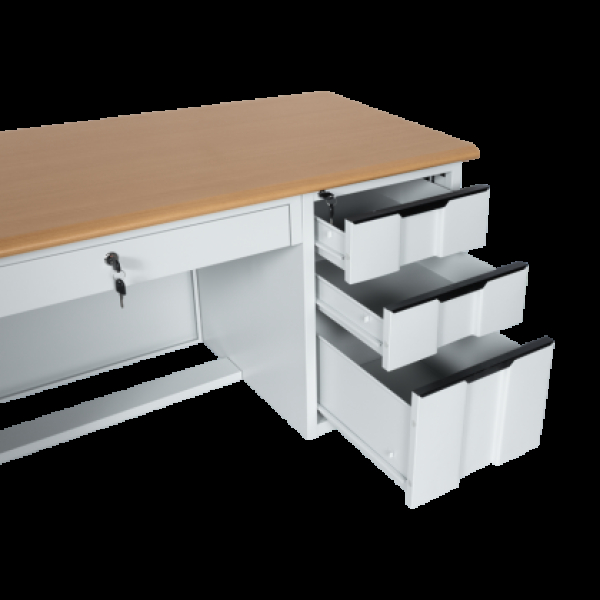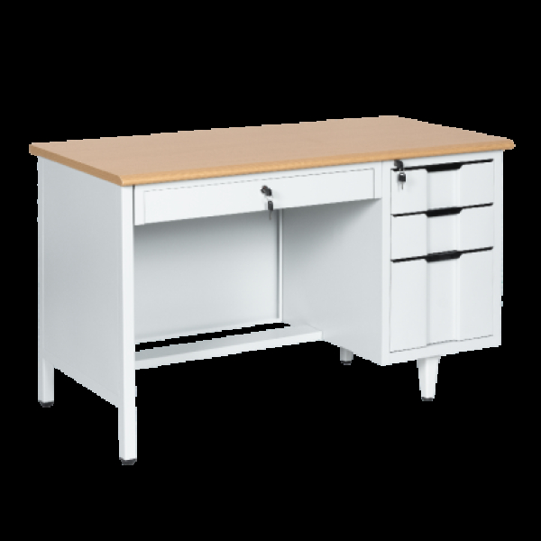 Бюрото Carmen CR-1310 K съчетава здравина и функционалност в изчистен, професионален дизайн. Конструкцията е изработена от праховобоядисан метал, а плотът е от MDF с меламиново покритие и дебелина 25 мм – стабилен и устойчив на натоварване. Моделът разполага с общо 4 чекмеджета, включително широко централно, като всички са оборудвани със заключване за по-добра сигурност на документите и вещите. На гърба са предвидени дискретни отвори за организиране на кабели, което го прави подходящо за офис, учебна среда или домашен работен кът. Пълна информация за размерите и характеристиките на металното бюро ще намерите в таблицата в таб/поле "Техническа информация".