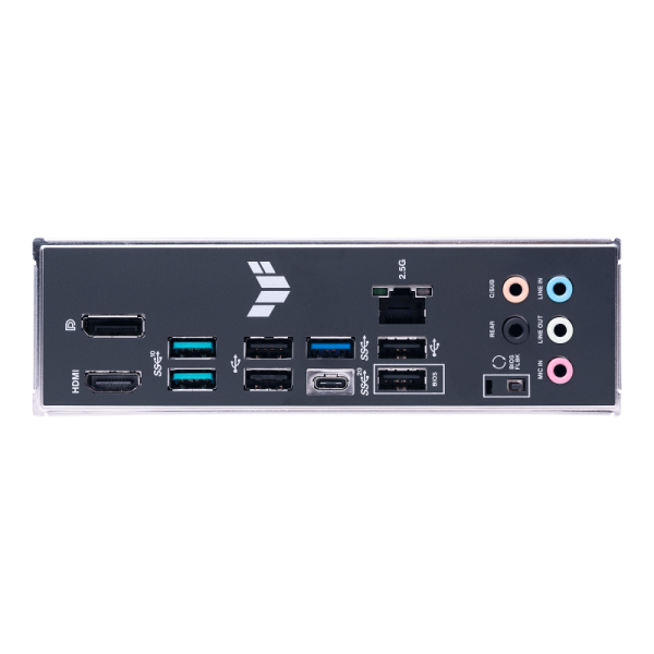 1 x USB 3.2 Gen 2x2 port (1 x USB Type-C®); 2 x USB 3.2 Gen 2 ports (2 x Type-A); 1 x USB 3.2 Gen 1 port (1 x Type-A); 4 x USB 2.0 ports (4 x Type-A); 1 x DisplayPort; 1 x HDMI®port; 1 x Realtek 2.5Gb Ethernet port; 5 x Audio jacks; 1 x BIOS FlashBack™ button