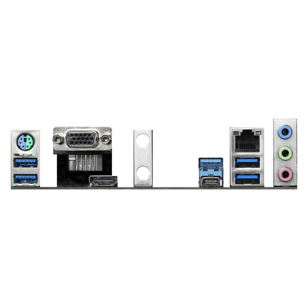 - Antenna Bracket; - 1 x PS/2 Mouse/Keyboard Port; - 1 x D-Sub Port; - 1 x HDMI Port; - 1 x USB 3.2 Gen2 Type-A Port (10 Gb/s) (Supports ESD Protection); - 1 x USB 3.2 Gen2 Type-C Port (10 Gb/s) (Supports ESD Protection); - 4 x USB 3.2 Gen1 Ports (Supports ESD Protection); - 1 x RJ-45 LAN Port with LED (ACT/LINK LED and SPEED LED); - HD Audio Jacks: Line in / Front Speaker / Microphone