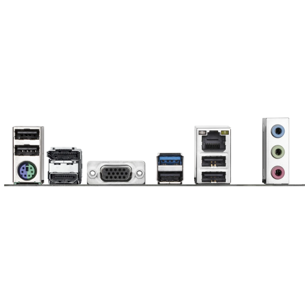 | Конектори | 1 x 24-pin ATX main power connector; 1 x 8-pin ATX 12V power connector; 1 x CPU fan header; 2 x system fan headers; 2 x addressable RGB Gen2 LED strip headers; 1 x M.2 Socket 3 connector; 4 x SATA 6Gb/s connectors; 1 x front panel header; 1 x front panel audio header; 1 x S/PDIF Out header; 1 x USB Type-C® header, with USB 3.2 Gen 1 support; 1 x USB 3.2 Gen 1 header; 1 x USB 2.0/1.1 header; 1 x Trusted Platform Module header (For the GC-TPM2.0 SPI/GC-TPM2.0 SPI 2.0/GC-TPM2.0 SPI V2 module only); 1 x serial port header; 1 x Clear CMOS jumper; 1 x PS/2 keyboard/mouse port; 1 x HDMI port (Note); 1 x DisplayPort (Note); 1 x D-Sub port; 1 x USB 3.2 Gen 1 port; 5 x USB 2.0/1.1 ports; 1 x RJ-45 port; 3 x audio jacks |