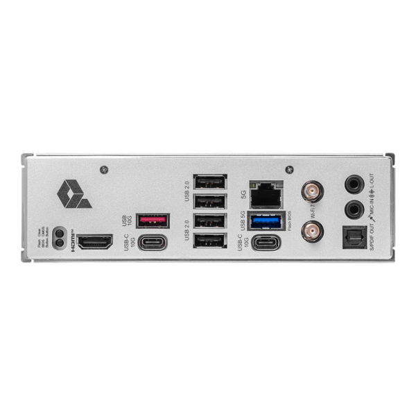 | Интерфейс | Clear CMOS бутон; USB 10 Gbps Type-A; USB 2.0; 5 г LAN; Wi-Fi / Bluetooth; аудио connectors; Flash BIOS бутон; HDMI™; USB 10 Gbps Type-C; USB 5 Gbps Type-A; USB 10 Gbps Type-C; S/PDIF OUT |
