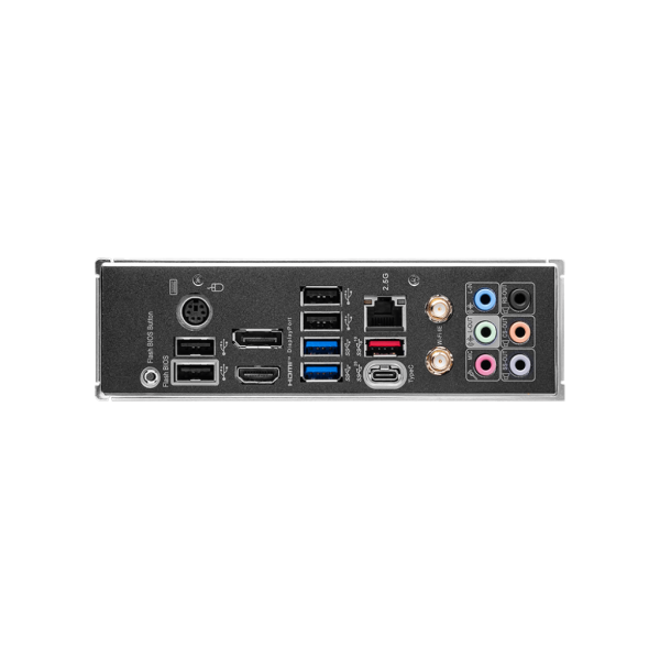 Keyboard / Mouse; DisplayPort; USB 2.0; 2.5G LAN Port; Wi-Fi / Bluetooth Antenna; Audio Connectors; Flash BIOS Button; USB 2.0; HDMI™ 2.1 Port; USB 3.2 Gen 1 5Gbps Type-A; USB 3.2 Gen 2x2 20Gbps Type-C; USB 3.2 Gen 2 10Gbps Type-A