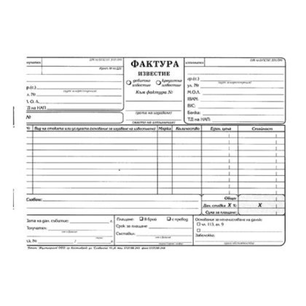 Фактура 10 реда Химизирана, А5 100 л.