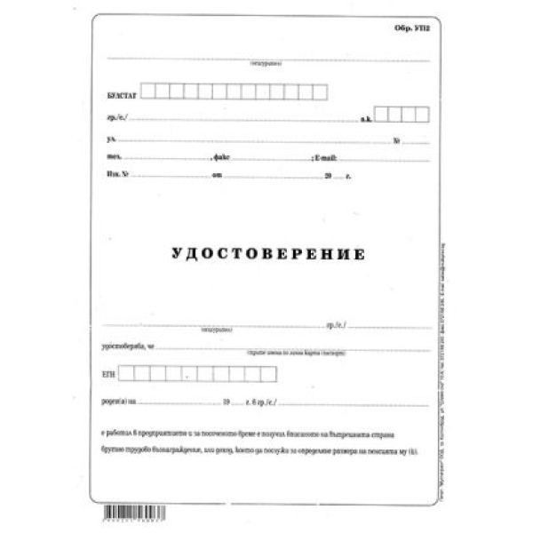 Удостоверение за трудово възнаграждение УП-2 Вестник, А3 50 л.
