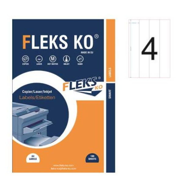 Етикети Fleks Ko Бели, прави ъгли, 52.5x297 mm A4, 100 л. 4 етик./лист
