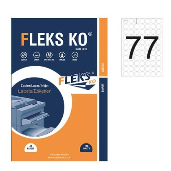 Етикети Fleks Ko Бели, кръгли, Ф25 mm A4, 100 л. 77 етик./лист