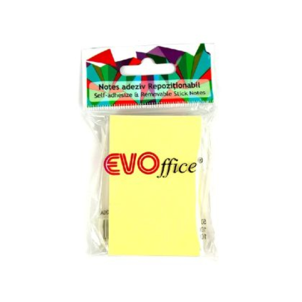 Самозалепващи листчета EVOffice 50x75 mm, 100 л. Жълти