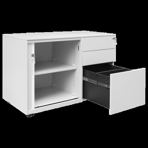 Кардекс Carmen CR-1852 ZH разполага с 2 чекмеджета и отделение с плъзгаща врата, като всяка зона е снабдена с отделно заключване с ключ. Вътрешният шкаф е оборудван с регулируеми рафтове, осигуряващи адаптивно пространство за документи и консумативи. Плъзгащата врата улеснява достъпа в тесни пространства, а компактният дизайн е подходящ за поставяне под или до бюро. Пълна информация за размерите и характеристиките на модела ще намерите в таблицата в таб/поле "Техническа информация".