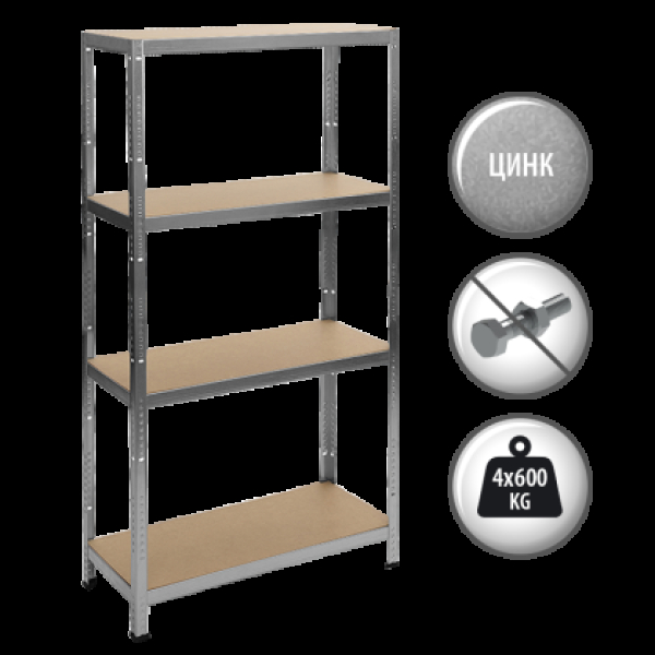 Метален стелаж Carmen CR-1024-2, 180x90x40 см, до 600 кг на рафт - цинк