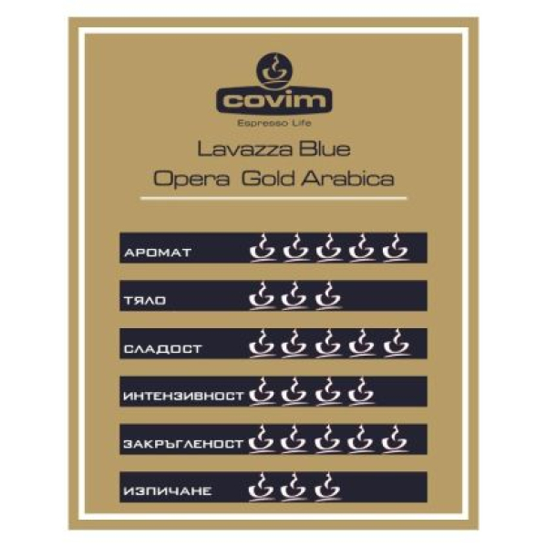 • Кафе на капсули Covim Gold Arabica Opera - първокласна Арабика, силен вкус, интензивен аромат и приятна, добре балансирана киселинност