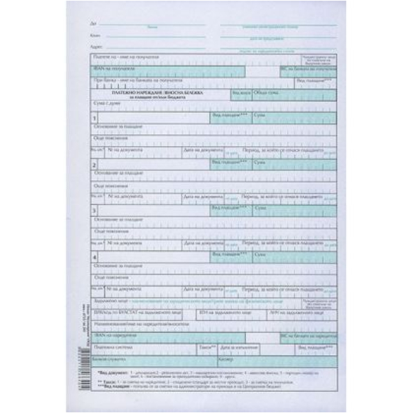 Платежно нареждане с вносна бележка за плащане от/към бюджета, з Химизирано, А4 100 л.