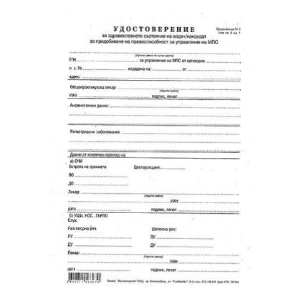 Медицинско свидетелство за водач на МПС Вестник, А5 100 л.