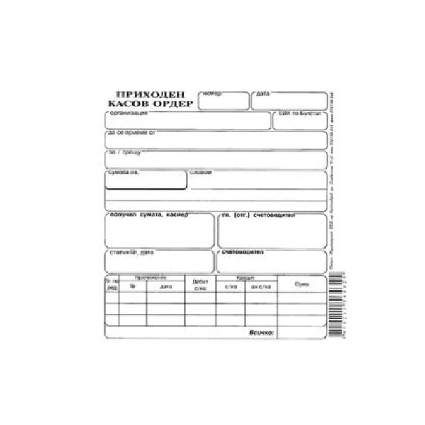 Приходен касов ордер Химизиран, 2/3 А5 100 л.