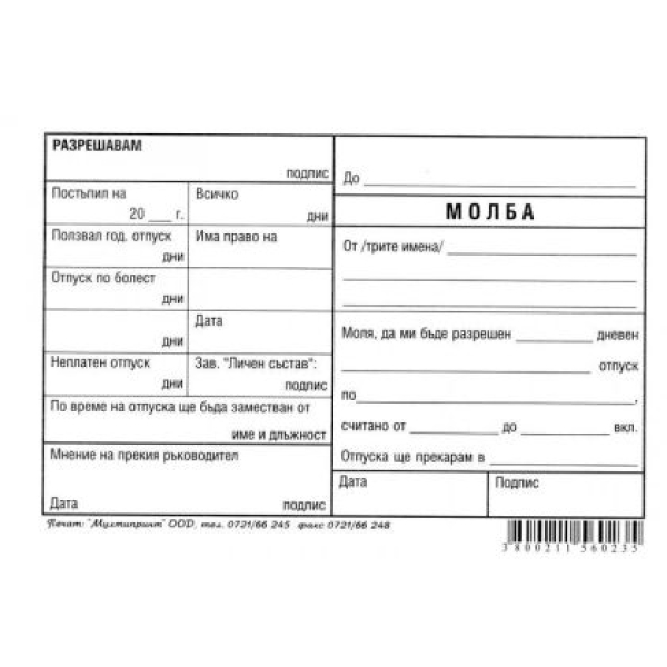 Молба за отпуск химизирана, B6 100 л.