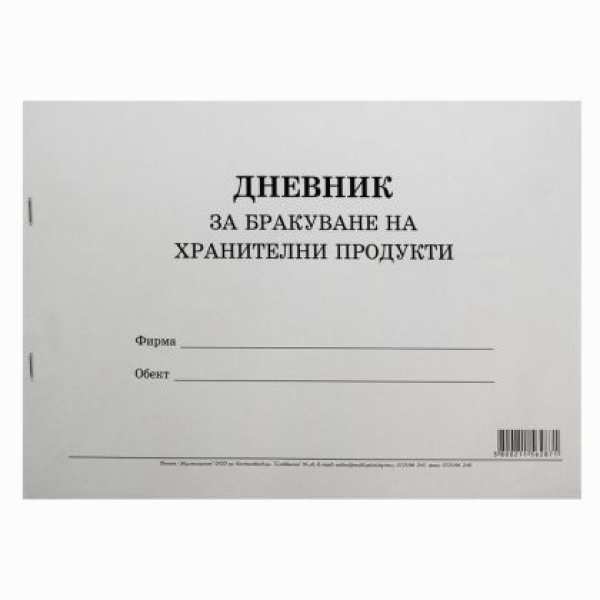Дневник за бракуване на хранителни продукти Меки корици, вестник, А4 50 л.