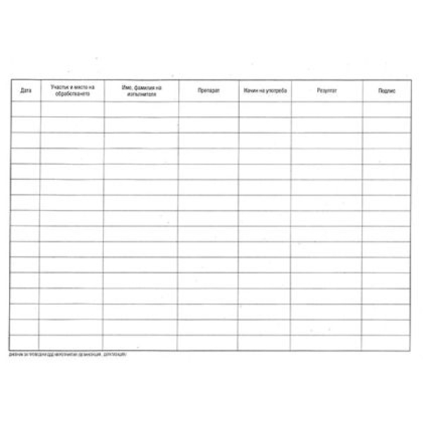 Дневник за проведени ДДД (дезинсекция, дератизация) мероприятия Меки корици, вестник, А4 50 л.