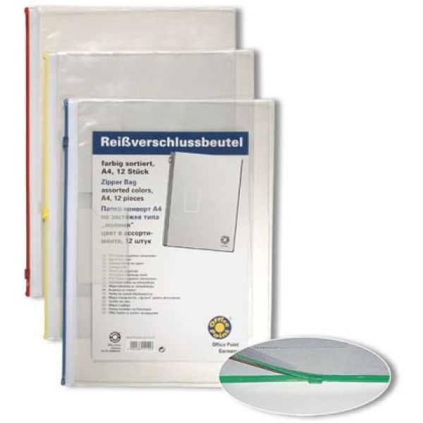 Папка джоб с цип Office Point Цветен цип, А5 Прозрачна