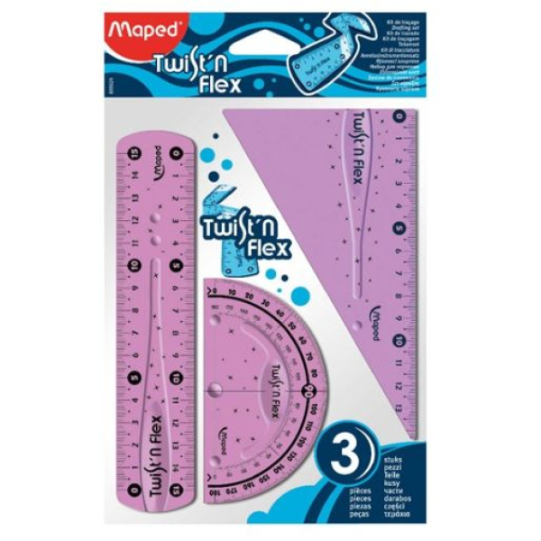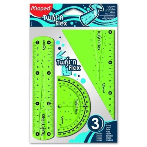 Комплект чертожни инструменти Maped Twist`n Flex Три части, Пластмасови гъвкави, Цветен микс