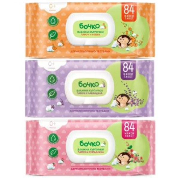 Мокри кърпи Бочко Почистващи и ароматизиращи, 84 бр. в плик с капак