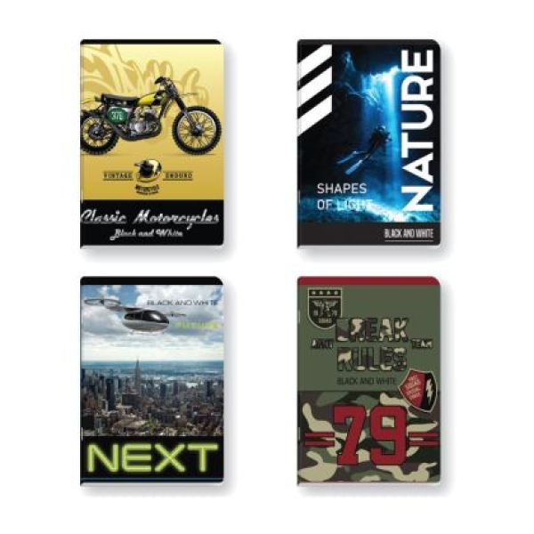 Тетрадка Black&White Boy Mix Меки корици, А5 80 л. с широки редове