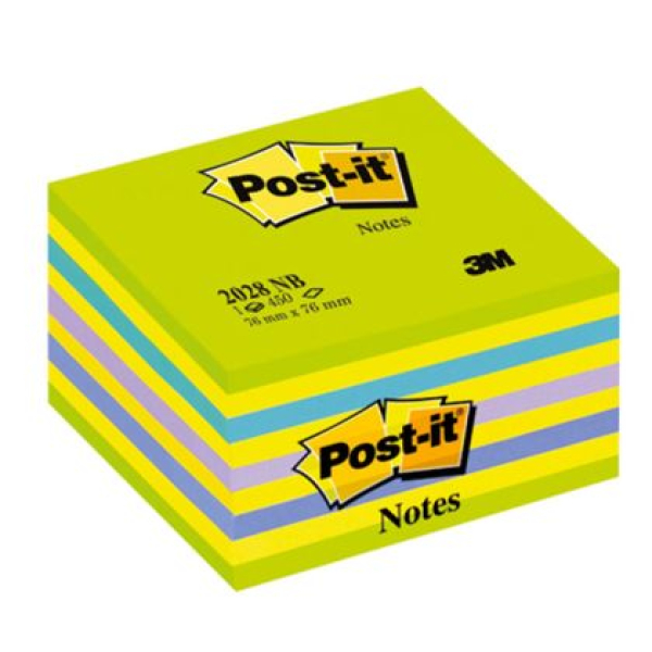 Самозалепващи листчета 3M 2028NB 76x76 mm, 450 л. Синьо-зелен неон микс