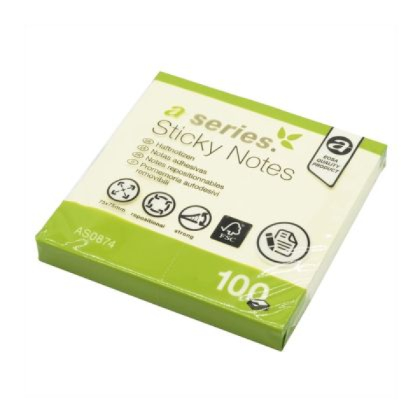 Самозалепващи листчета A-Series 75x75 mm 100 л. жълт