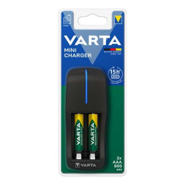 Батерия Varta Power Accu R2U/AAA със зарядно Презареждаща 800 mAh, 1.2V, 2 бр., За 1/2 батерии AA/AAA